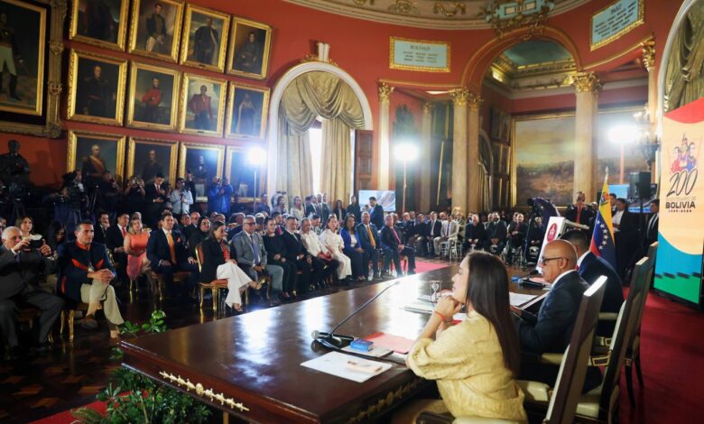 La Asamblea Nacional (AN) de Venezuela celebró una sesión especial este 6 de agosto para conmemorar el Bicentenario de la Independencia de Bolivia. El presidente del parlamento, Jorge Rodríguez, dio la bienvenida a representantes del cuerpo diplomático acreditado en el país, autoridades nacionales e invitados especiales.