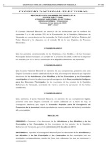 Esta semana fue publicada en Gaceta Oficial la resolución para la celebración de elecciones con el fin de escoger a los alcaldes y concejales de los 335 municipios del país el próximo 27 de julio, según anunció el Consejo Nacional Electoral (CNE).