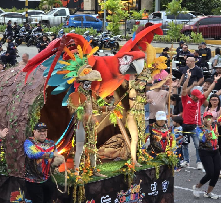 Valencia se vistió de colores, al ritmo de la música, durante el desfile de carrozas y comparsas que recorrió las calles de la avenida Bolívar Norte y la avenida Sesquicentenaria de la ciudad, para deleitar a los presentes durante los carnavales 2026.